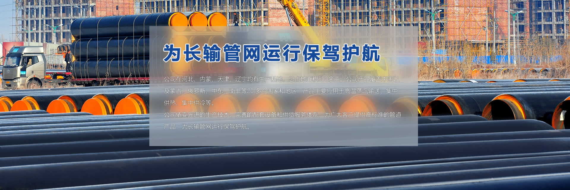 公司在河北、內(nèi)蒙、天津、遼寧均有生產(chǎn)基地,總占地面積500余畝。公司產(chǎn)品覆蓋中國(guó)以及蒙古、俄羅斯、中東、南非等20 多個(gè)國(guó)家和地區(qū),產(chǎn)品主要應(yīng)用于高溫蒸汽輸送、集中供熱、集中供冷等。